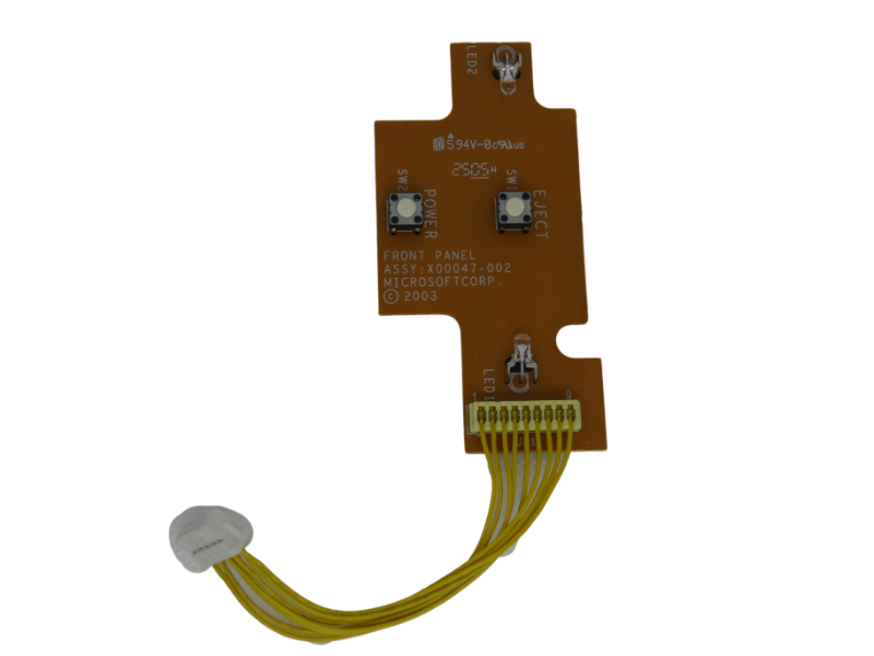The original Xbox PCB for the Power and Eject buttons is an essential component for operating your console. This PCB provides the electronic connection between the buttons and the internal circuit boards of the Xbox, enabling the functions to power the console on and off and open the DVD drive. Ideal for replacing a faulty PCB or for use in modding projects.